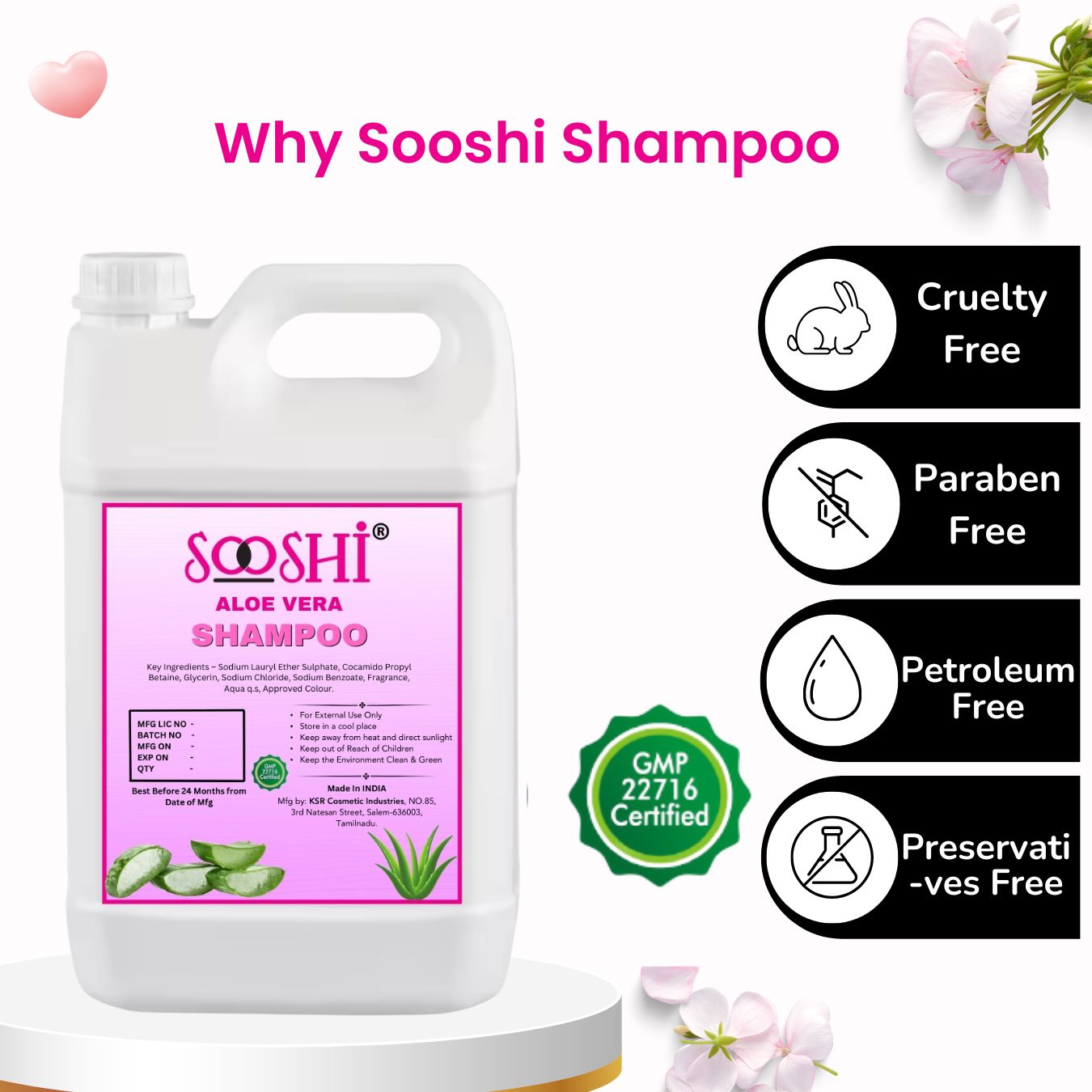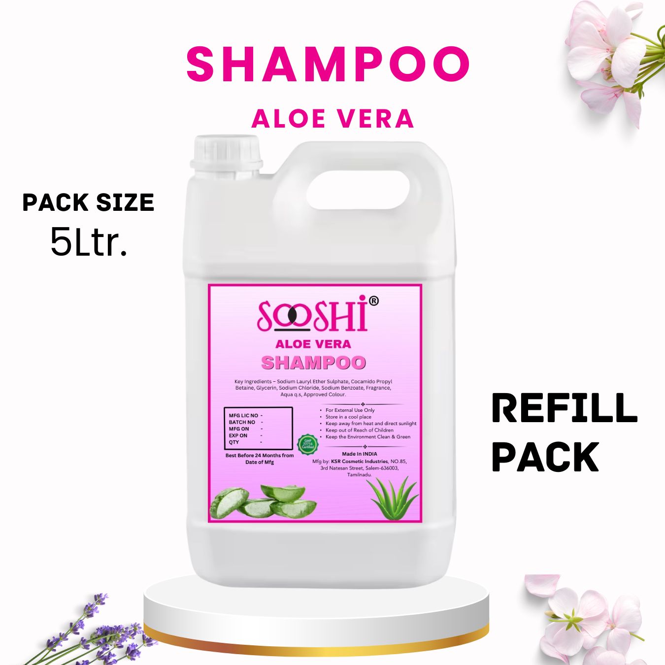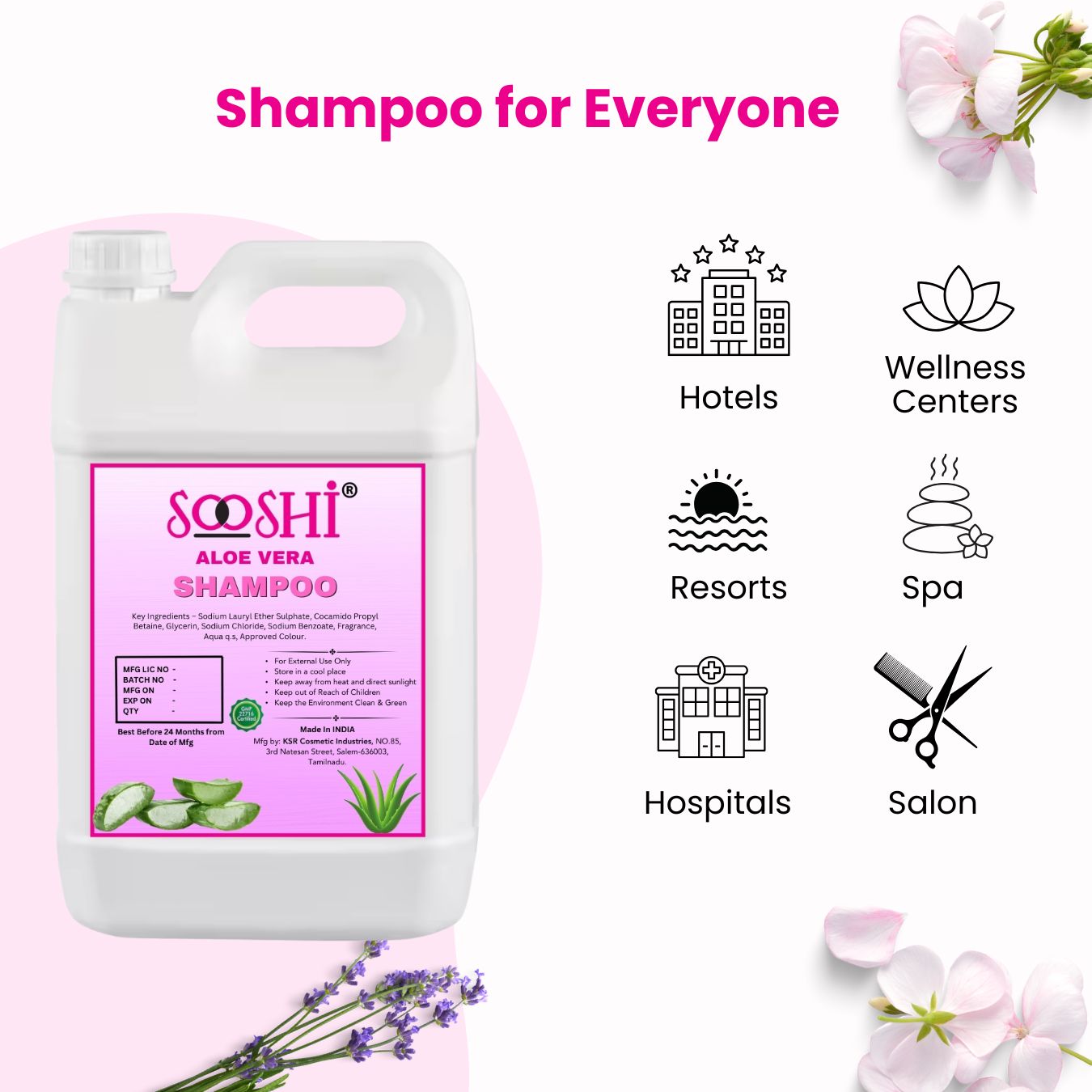 Sooshi® Hotel Shampoo 5L Refill Pack (Aloe Vera) – Premium Organic Extracts for Hospitality Industry, Enchanting Fragrance, Soothing & Cleansing Formula, Luxurious Hair Care for Guests